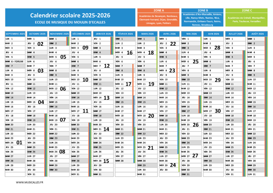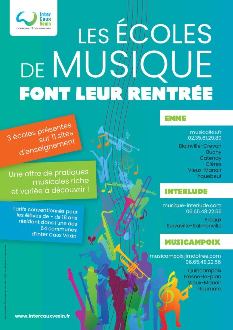 Enseignement de la musique et du chant : Accordéon, Basse, Batterie, Flûte traversière, Guitare, Piano, Saxophone, Trompette, Violon, Eveil muscical.